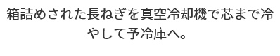 収穫された長ねぎを真空冷却機に30~40分かけ、芯までしっかりと冷やしてから予冷庫へ。お店に届いた時のことを考えて、ベストな管理を目指しています。